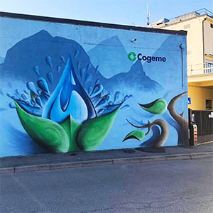 Allo stesso tempo, è stata promossa la realizzazione di un murales, realizzato con la tecnica del writing dall’artista Giovanni Mulè, sulla parete esterna della sede Cogeme che affaccia su via Mezzana, e che in vista del 50° di fondazione (1970-2020) della Società ripercorre i temi della storia aziendale.